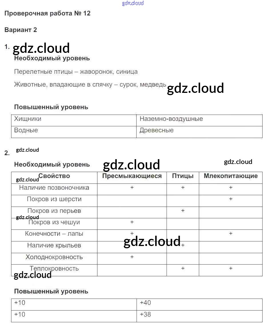 Ответы к ПР №12 (варианты) по Окружающему миру 3 класс Проверочные и контрольные работы Вахрушев Школа 2100 Баласс
