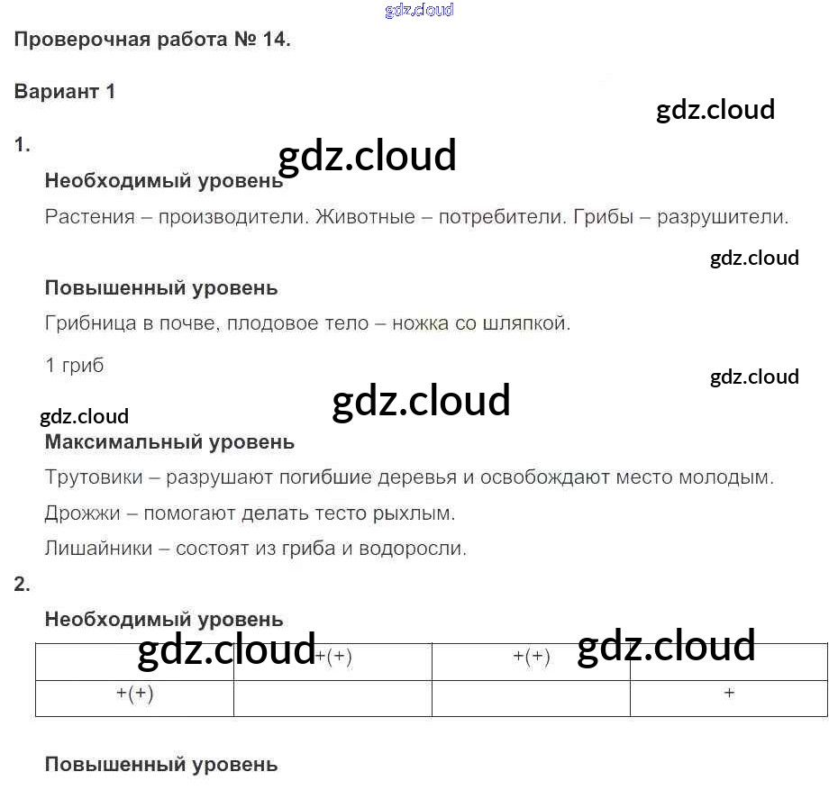 Ответы к ПР №14 (варианты) по Окружающему миру 3 класс Проверочные и контрольные работы Вахрушев Школа 2100 Баласс