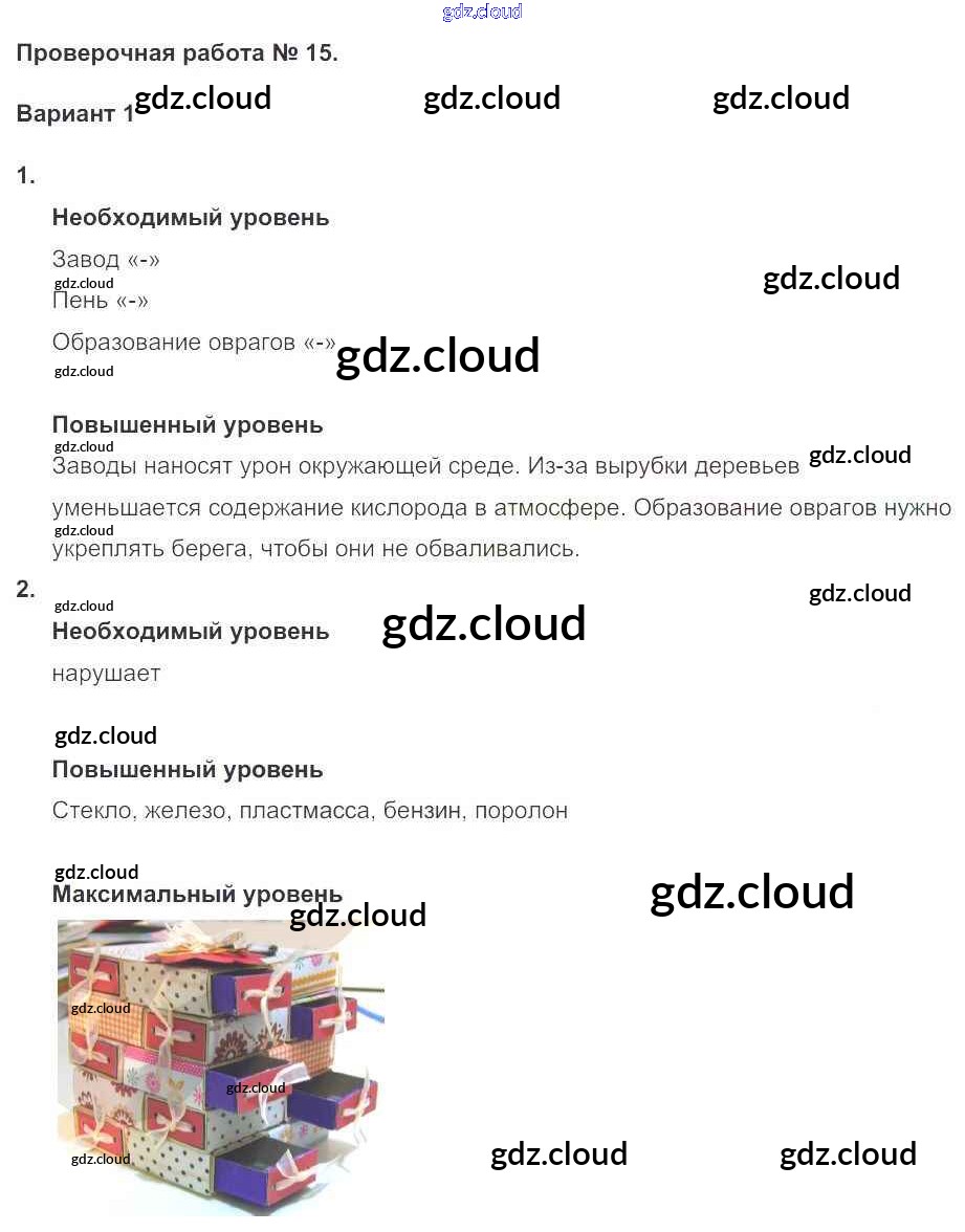 Ответы к ПР №15 (варианты) по Окружающему миру 3 класс Проверочные и контрольные работы Вахрушев Школа 2100 Баласс