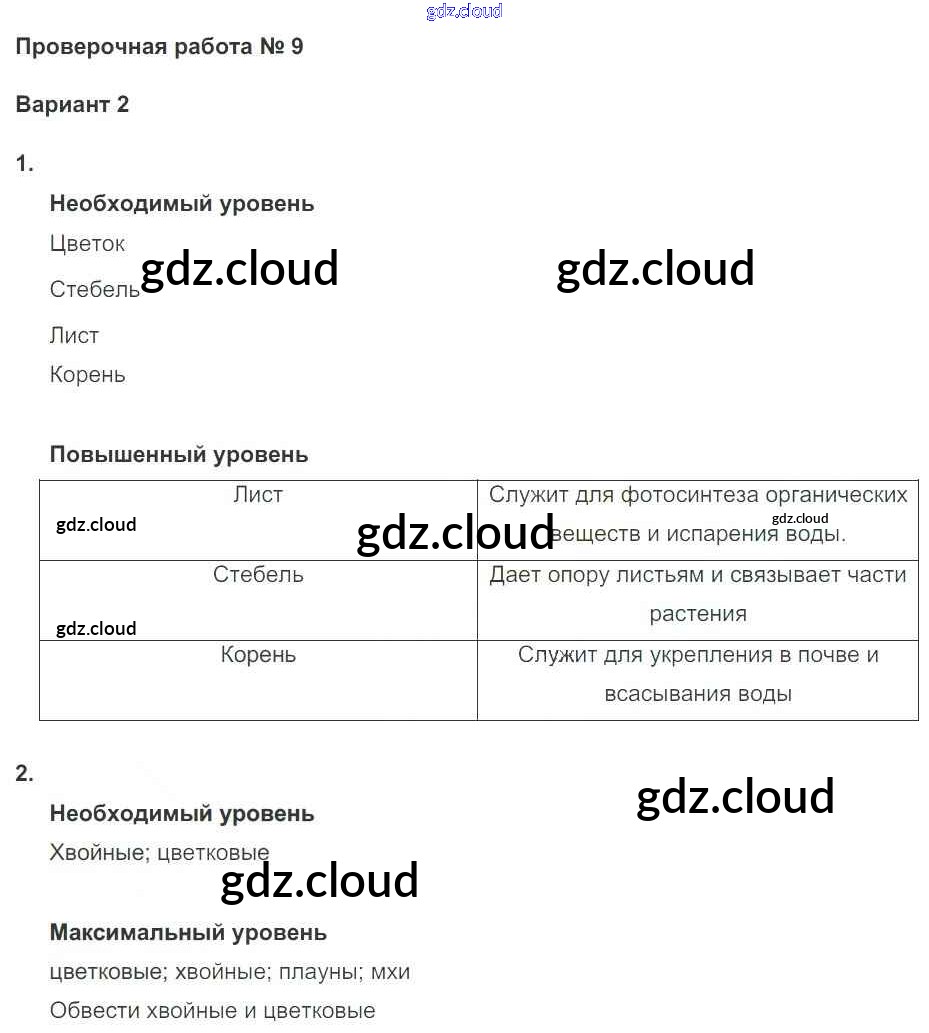 Ответы к ПР №9 (варианты) по Окружающему миру 3 класс Проверочные и контрольные работы Вахрушев Школа 2100 Баласс
