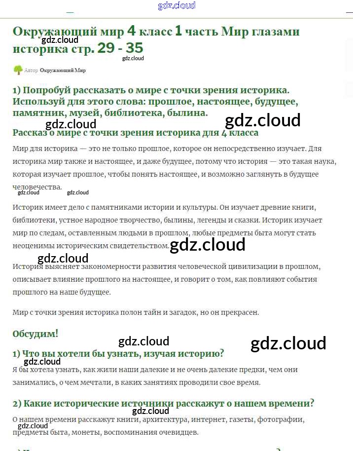 Ответ на задание 29 Учебник Окружающий мир за 4 (четвертый) класс Плешаков, Крючкова Школа России 2013 Часть 1, 2