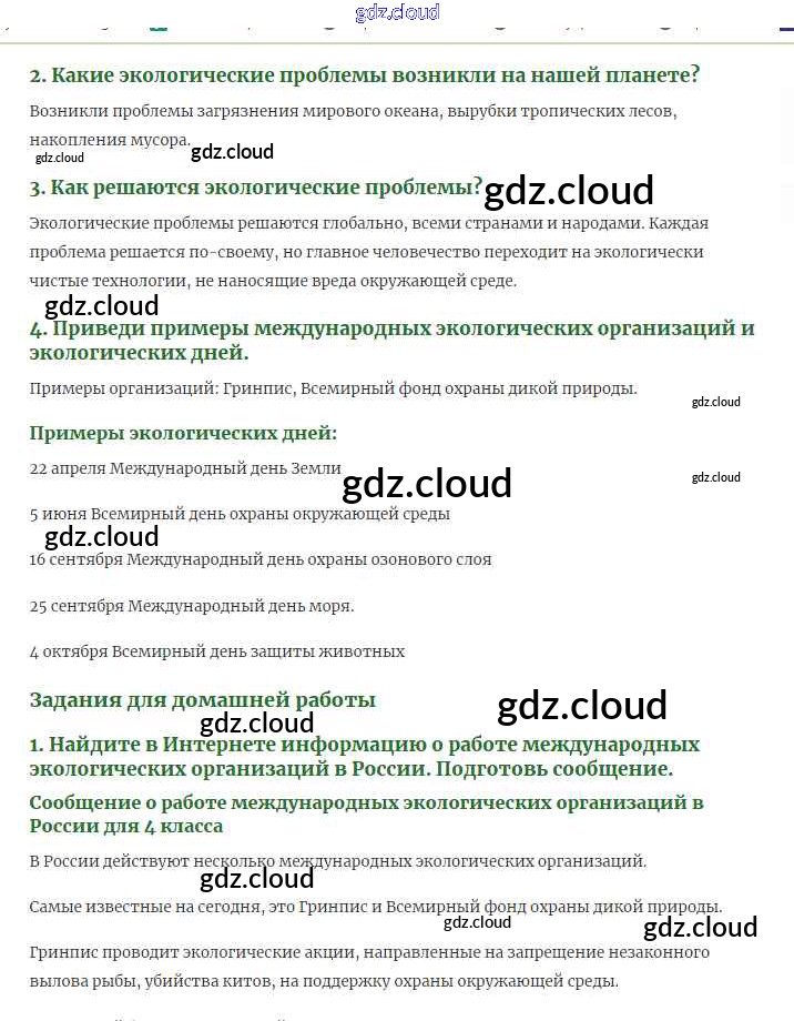 Земля и человечество Ответы к части 1 по Окружающему миру 4 класс Учебник Плешаков Школа России Часть 1, 2 Просвещение