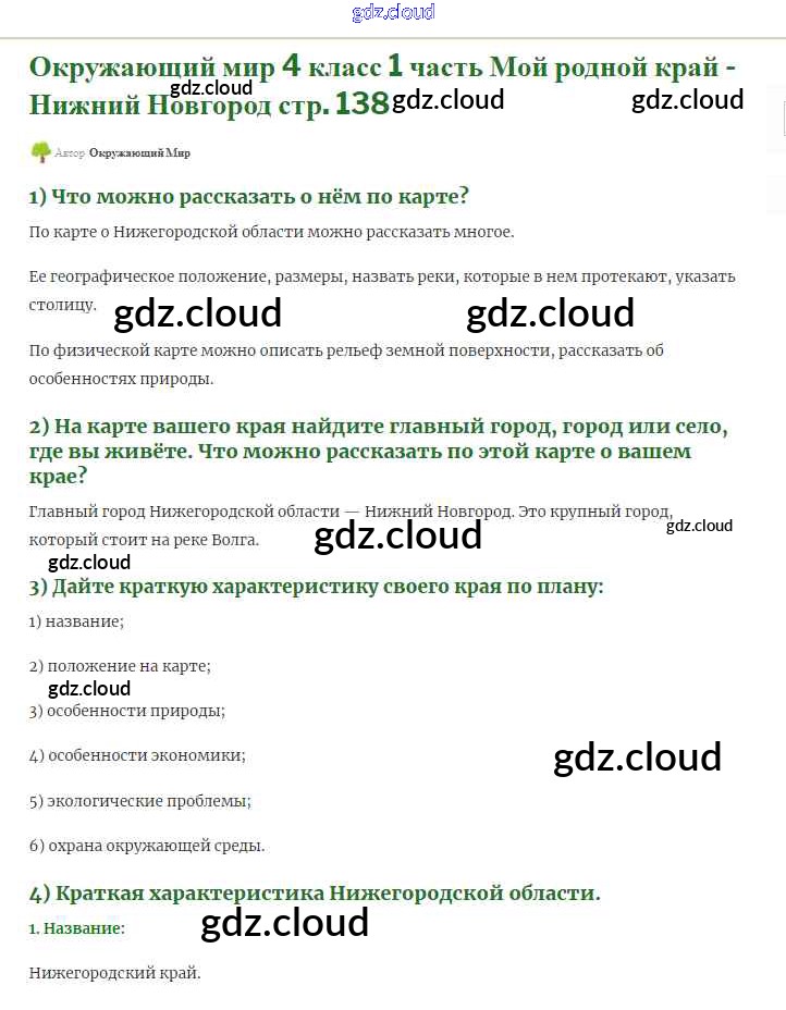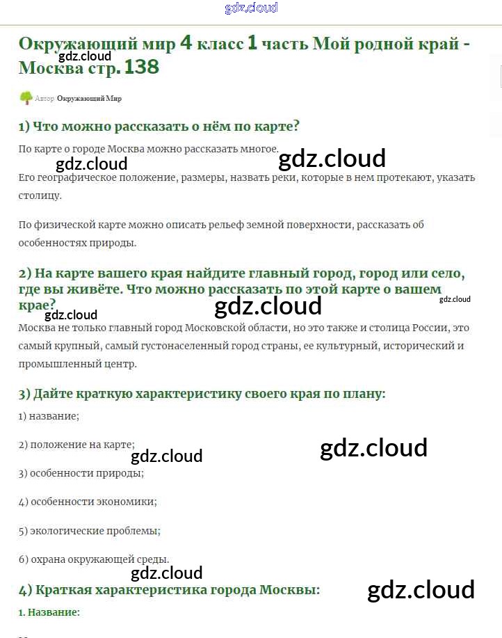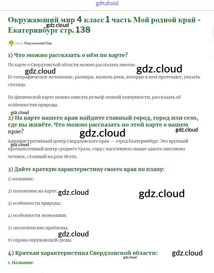 Ответ на задание 138 Учебник Окружающий мир за 4 (четвертый) класс Плешаков, Крючкова Школа России 2013 Часть 1, 2