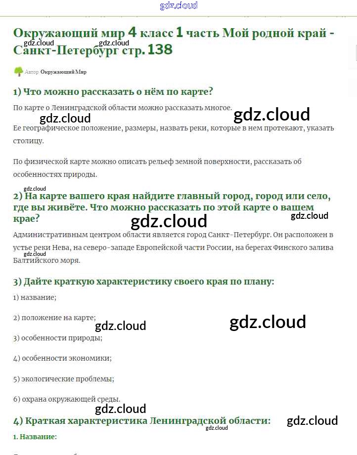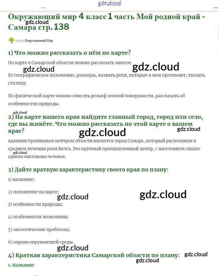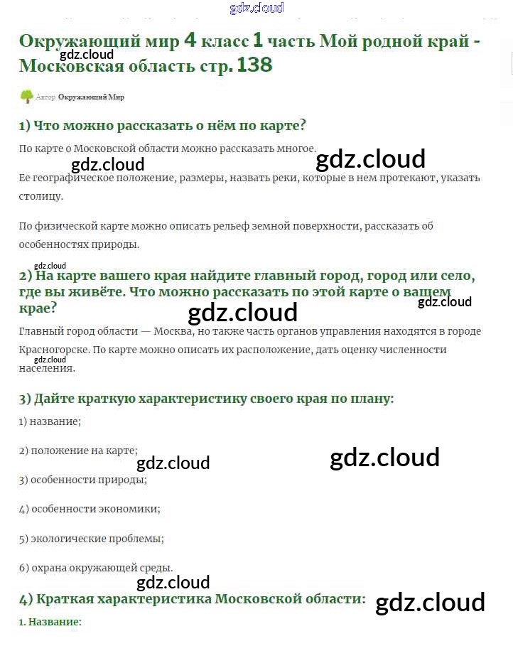 Родной край - часть большой страны Ответы к части 1 по Окружающему миру 4 класс Учебник Плешаков Школа России Часть 1, 2 Просвещение