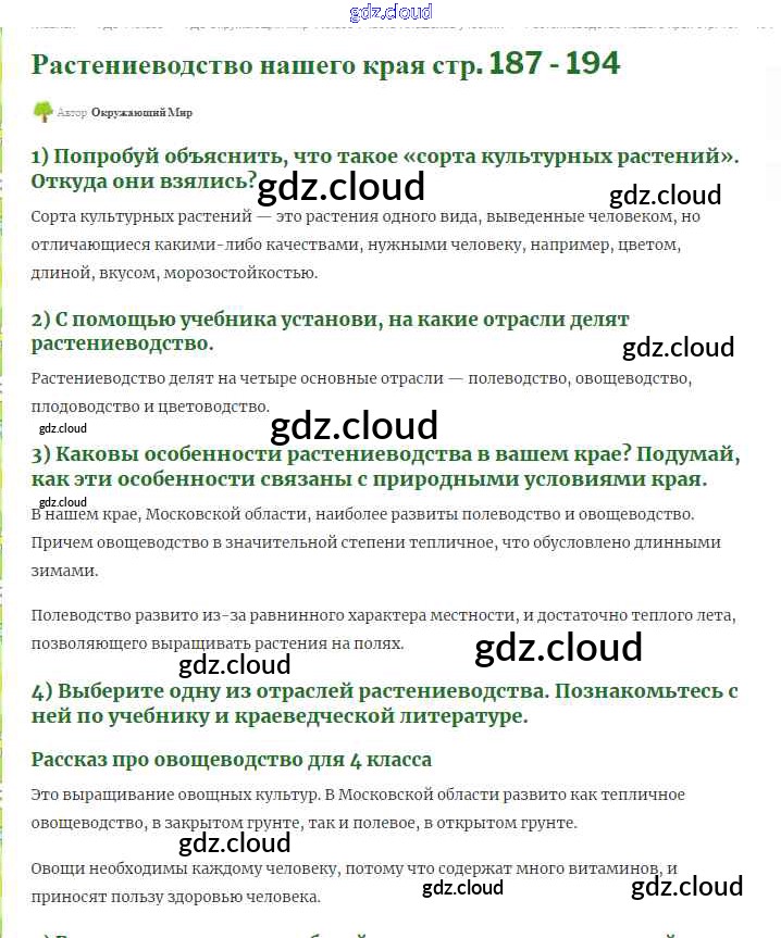 Ответ на задание 187 Учебник Окружающий мир за 4 (четвертый) класс Плешаков, Крючкова Школа России 2013 Часть 1, 2