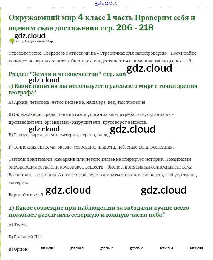 Ответ на задание 206 Учебник Окружающий мир за 4 (четвертый) класс Плешаков, Крючкова Школа России 2013 Часть 1, 2