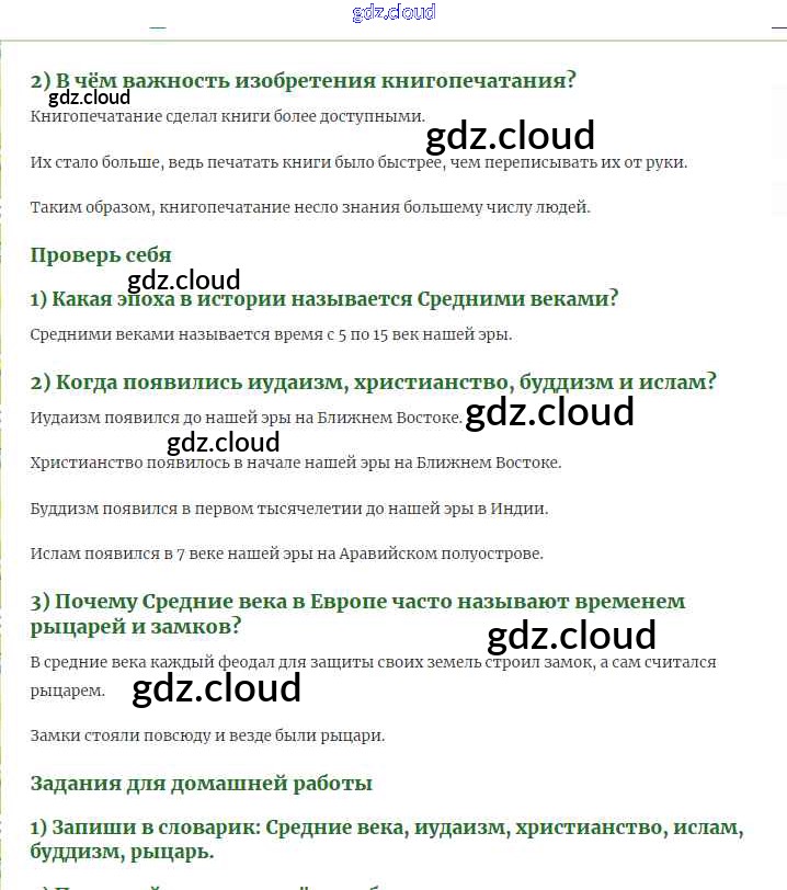 Страницы всемирной истории Ответы к части 2 по Окружающему миру 4 класс Учебник Плешаков Школа России Часть 1, 2 Просвещение