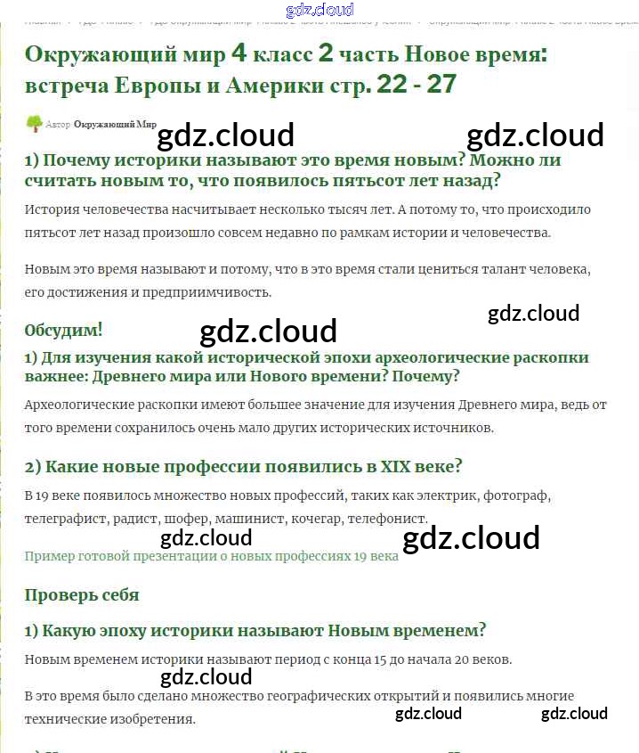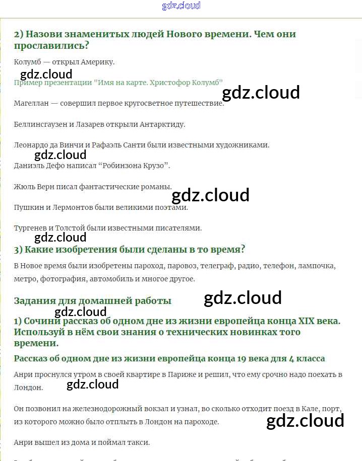 Страницы всемирной истории Ответы к части 2 по Окружающему миру 4 класс Учебник Плешаков Школа России Часть 1, 2 Просвещение