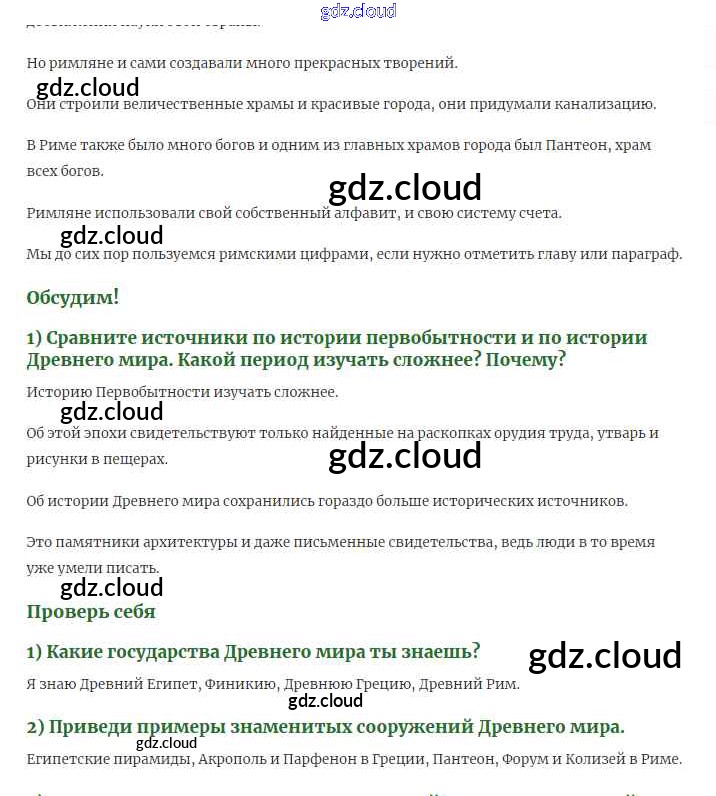 Страницы всемирной истории Ответы к части 2 по Окружающему миру 4 класс Учебник Плешаков Школа России Часть 1, 2 Просвещение