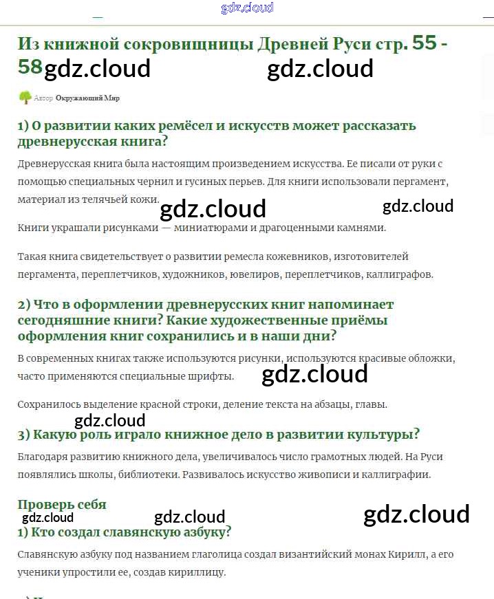 Ответ на задание 55 Учебник Окружающий мир за 4 (четвертый) класс Плешаков, Крючкова Школа России 2013 Часть 1, 2