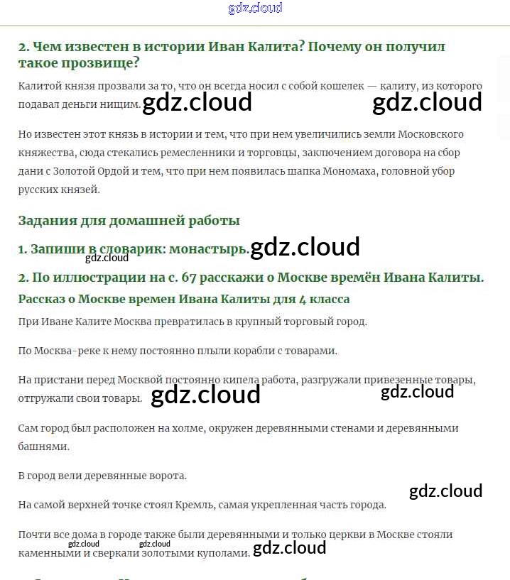 Страницы истории России Ответы к части 2 по Окружающему миру 4 класс Учебник Плешаков Школа России Часть 1, 2 Просвещение