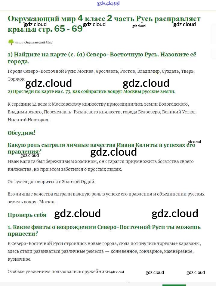Ответ на задание 65 Учебник Окружающий мир за 4 (четвертый) класс Плешаков, Крючкова Школа России 2013 Часть 1, 2