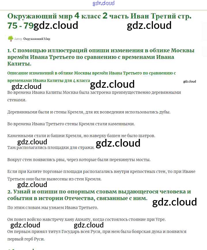 Ответ на задание 75 Учебник Окружающий мир за 4 (четвертый) класс Плешаков, Крючкова Школа России 2013 Часть 1, 2
