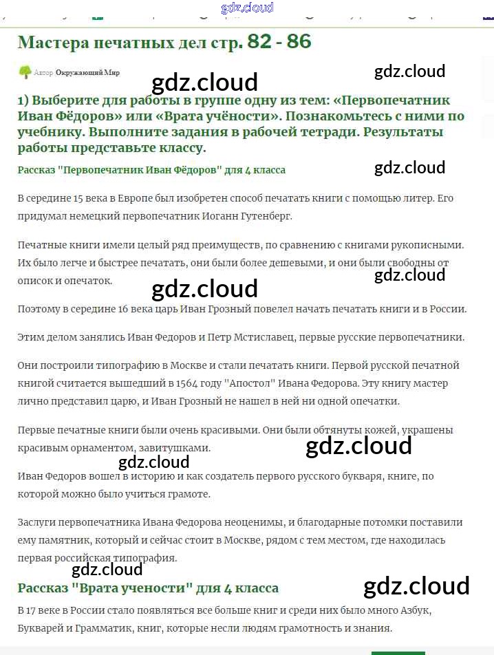 Ответ на задание 82 Учебник Окружающий мир за 4 (четвертый) класс Плешаков, Крючкова Школа России 2013 Часть 1, 2