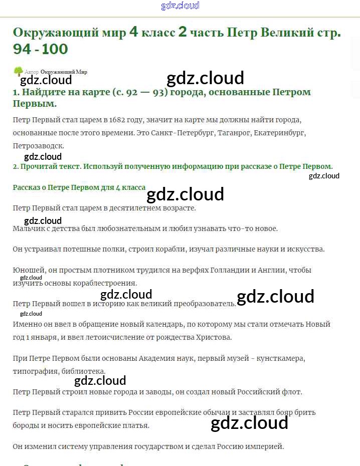 Ответ на задание 94 Учебник Окружающий мир за 4 (четвертый) класс Плешаков, Крючкова Школа России 2013 Часть 1, 2