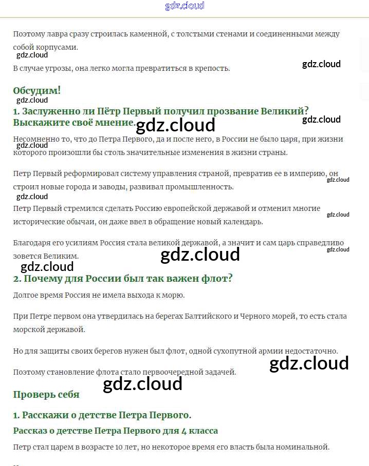 Страницы истории России Ответы к части 2 по Окружающему миру 4 класс Учебник Плешаков Школа России Часть 1, 2 Просвещение