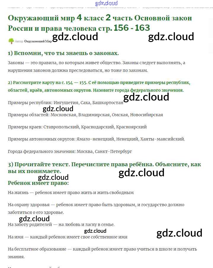 Ответ на задание 156 Учебник Окружающий мир за 4 (четвертый) класс Плешаков, Крючкова Школа России 2013 Часть 1, 2