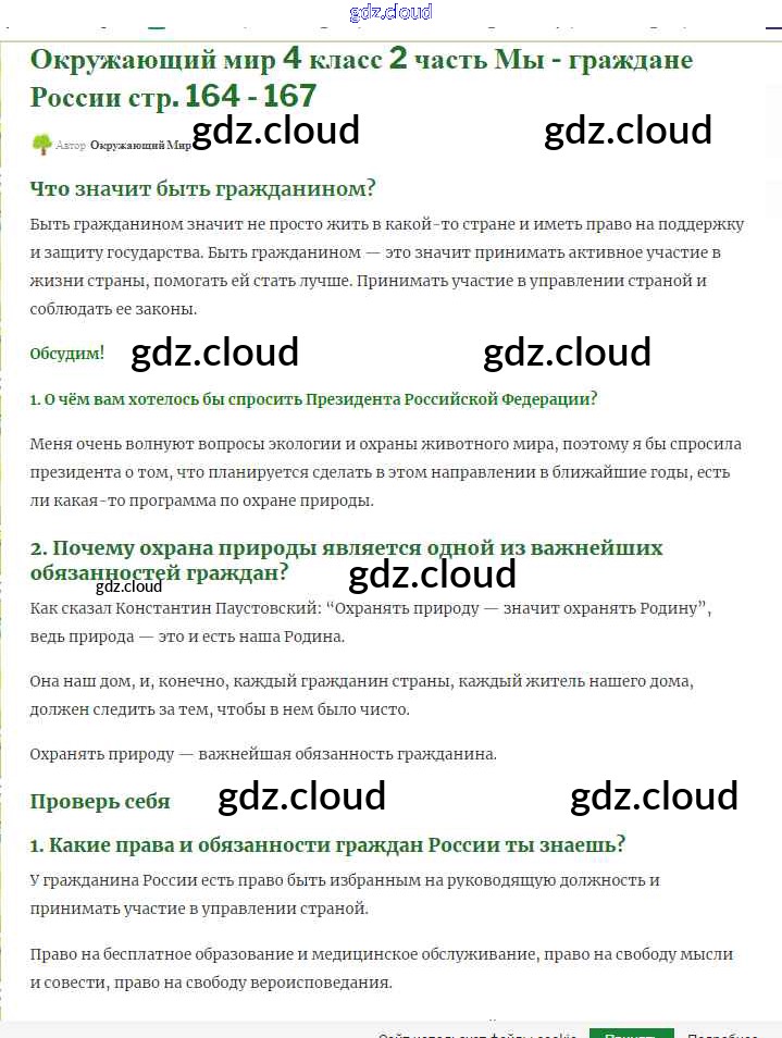 Ответ на задание 164 Учебник Окружающий мир за 4 (четвертый) класс Плешаков, Крючкова Школа России 2013 Часть 1, 2