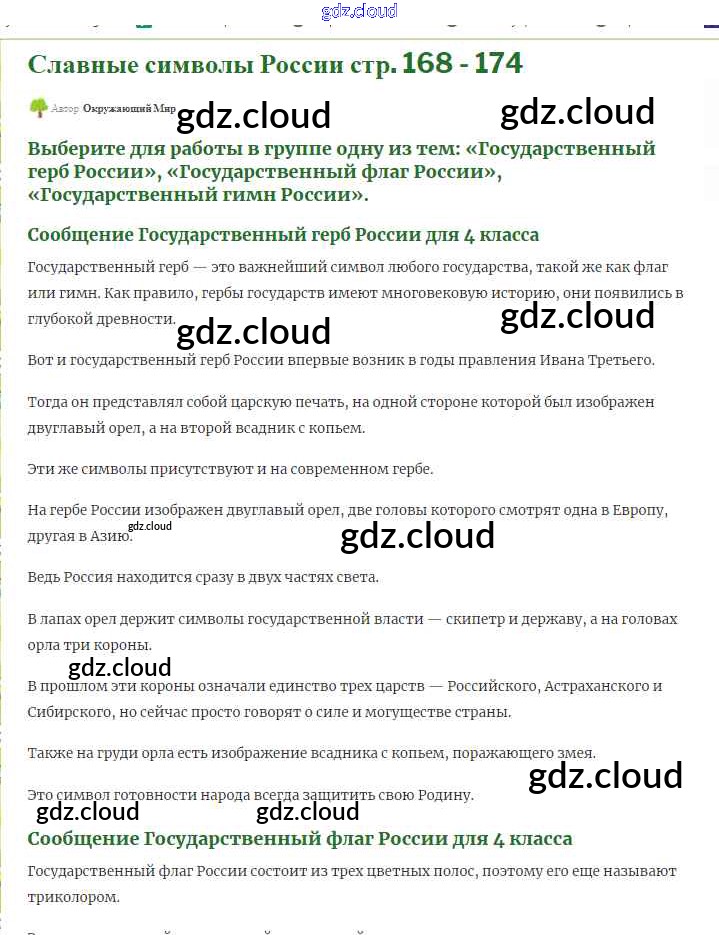 Ответ на задание 168 Учебник Окружающий мир за 4 (четвертый) класс Плешаков, Крючкова Школа России 2013 Часть 1, 2