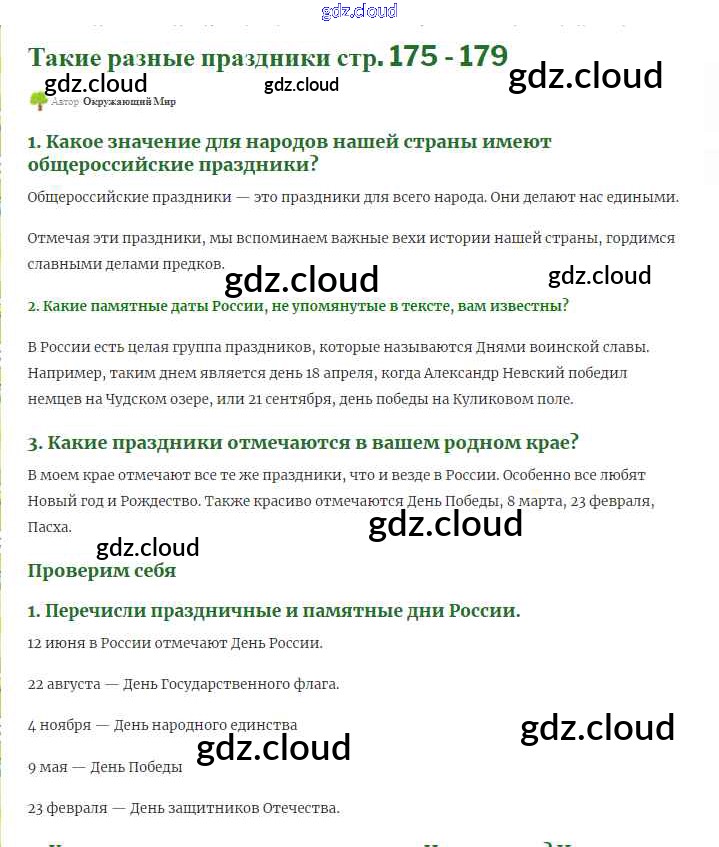 Ответ на задание 175 Учебник Окружающий мир за 4 (четвертый) класс Плешаков, Крючкова Школа России 2013 Часть 1, 2