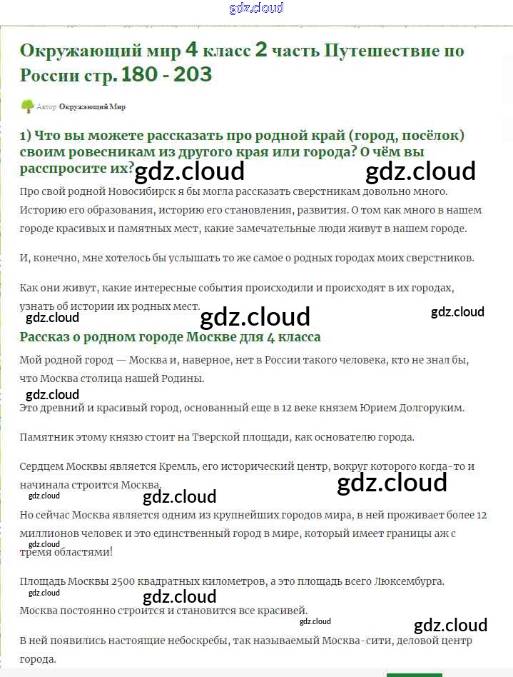 Ответ на задание 180 Учебник Окружающий мир за 4 (четвертый) класс Плешаков, Крючкова Школа России 2013 Часть 1, 2