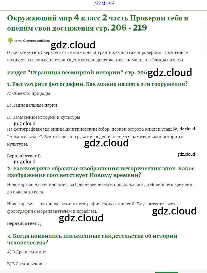 Ответ на задание 206 Учебник Окружающий мир за 4 (четвертый) класс Плешаков, Крючкова Школа России 2013 Часть 1, 2