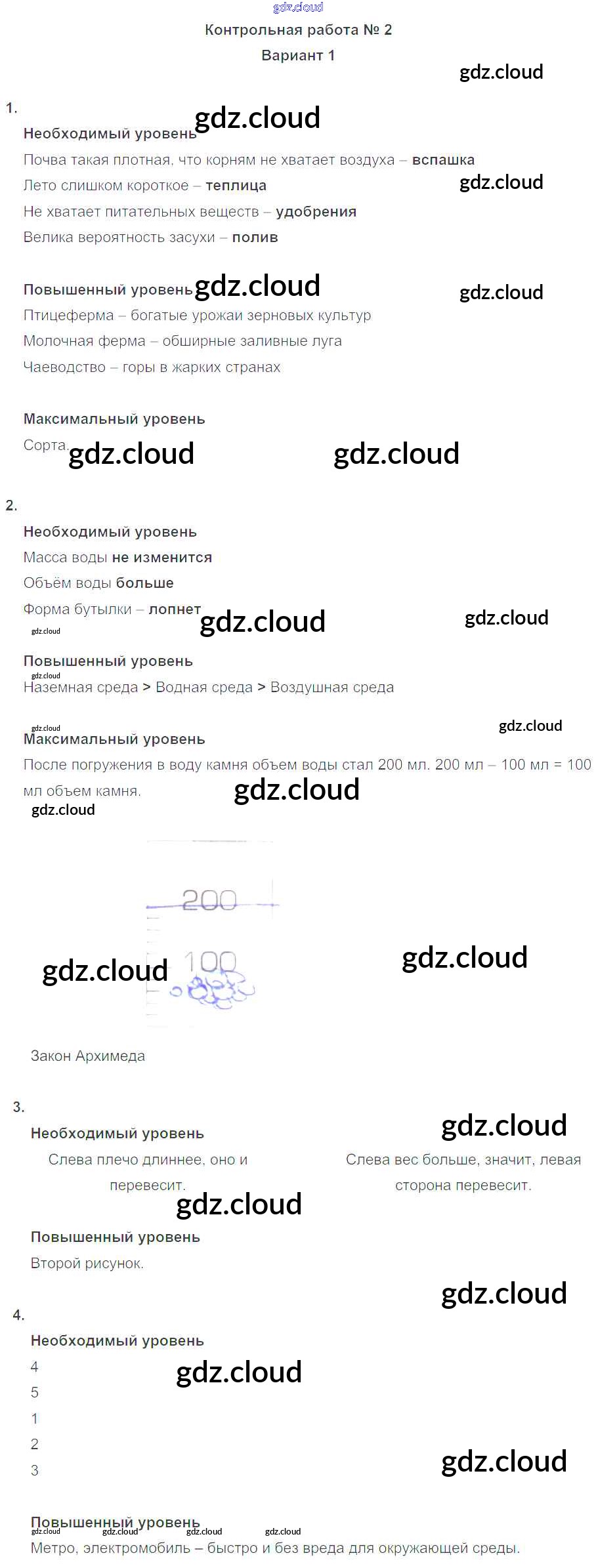 КР-2. Варианты Контрольные работы по Окружающему миру 4 класс Проверочные и контрольные работы Вахрушев Школа 2100 Баласс