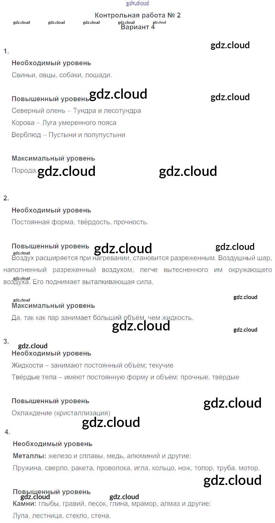 КР-2. Варианты Контрольные работы по Окружающему миру 4 класс Проверочные и контрольные работы Вахрушев Школа 2100 Баласс