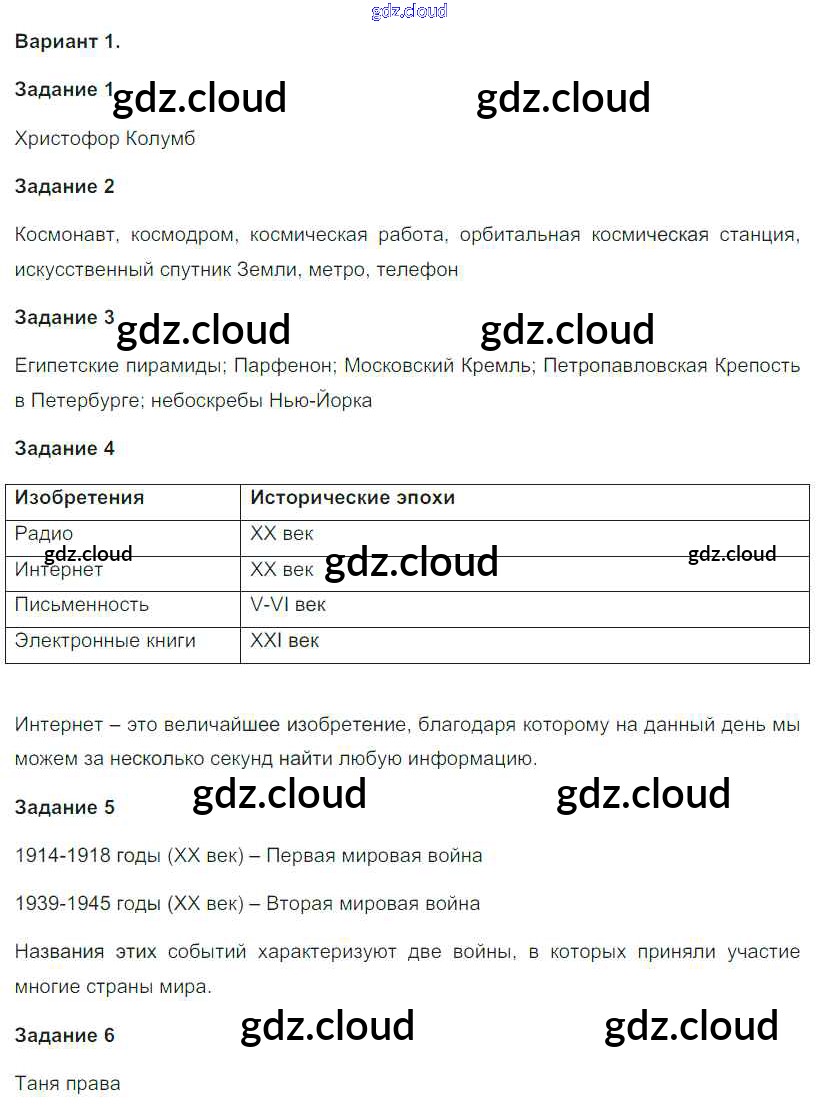 Ответы к ПР-4. Варианты по Окружающему миру 4 класс Проверочные работы Плешаков Школа России Просвещение