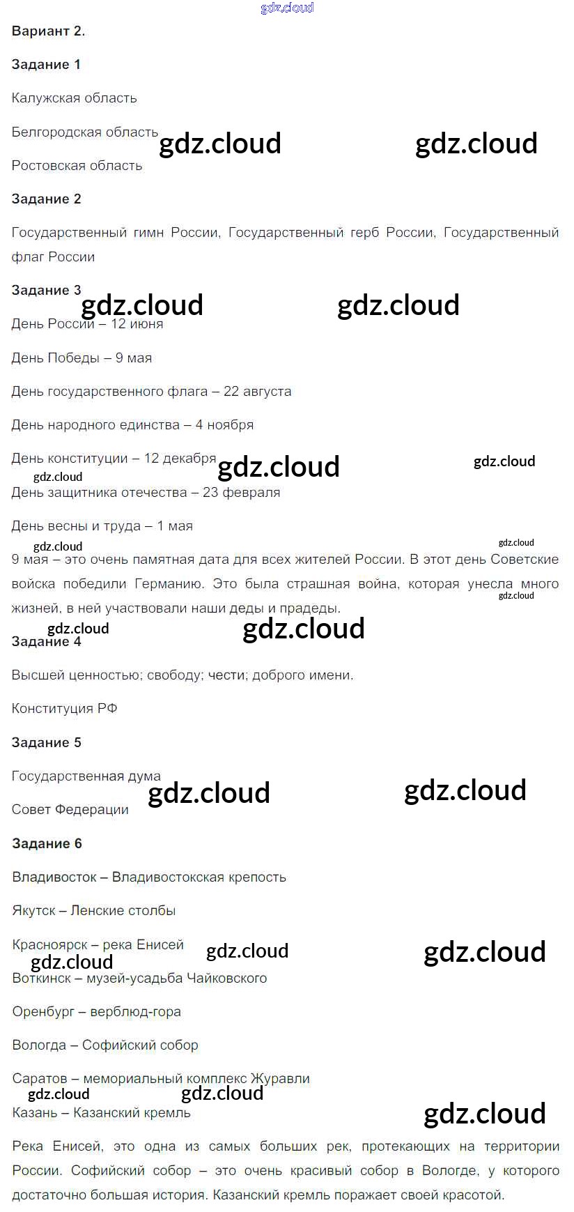 Ответы к ПР-6. Варианты по Окружающему миру 4 класс Проверочные работы Плешаков Школа России Просвещение
