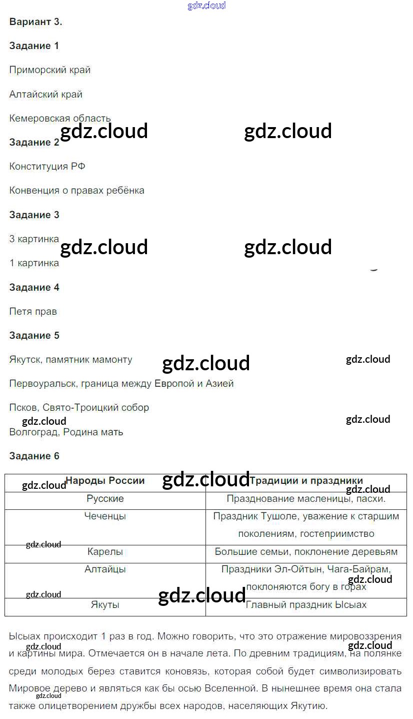 Ответ на задание 3 Проверочные работы Окружающий мир за 4 (четвертый) класс Плешаков, Крючкова Школа России 2018