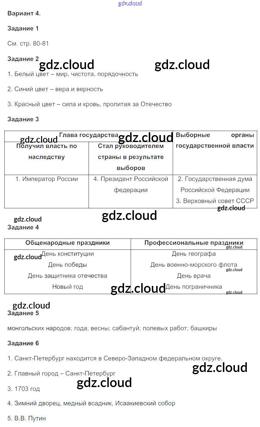 Ответ на задание 4 Проверочные работы Окружающий мир за 4 (четвертый) класс Плешаков, Крючкова Школа России 2018