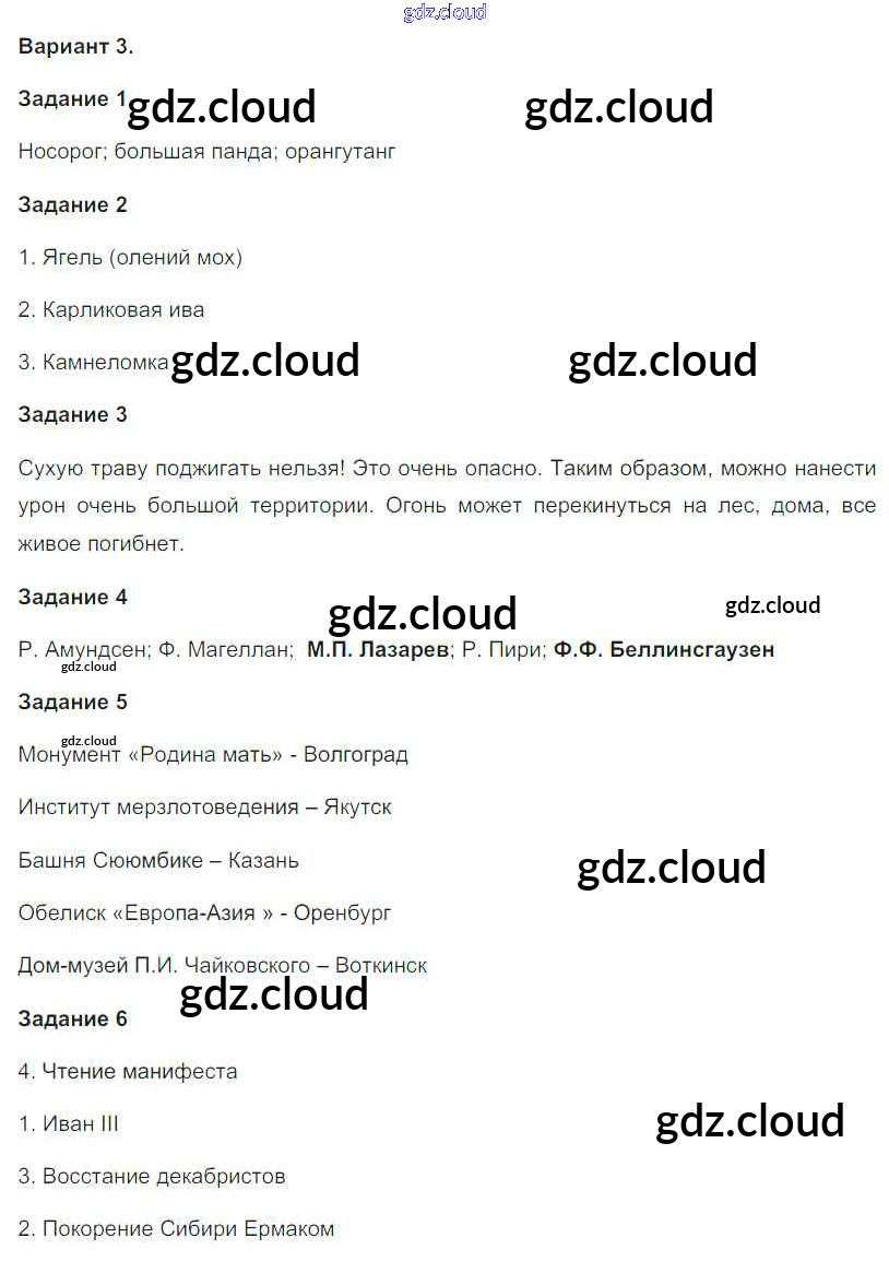 Ответ на задание 3 Проверочные работы Окружающий мир за 4 (четвертый) класс Плешаков, Крючкова Школа России 2018