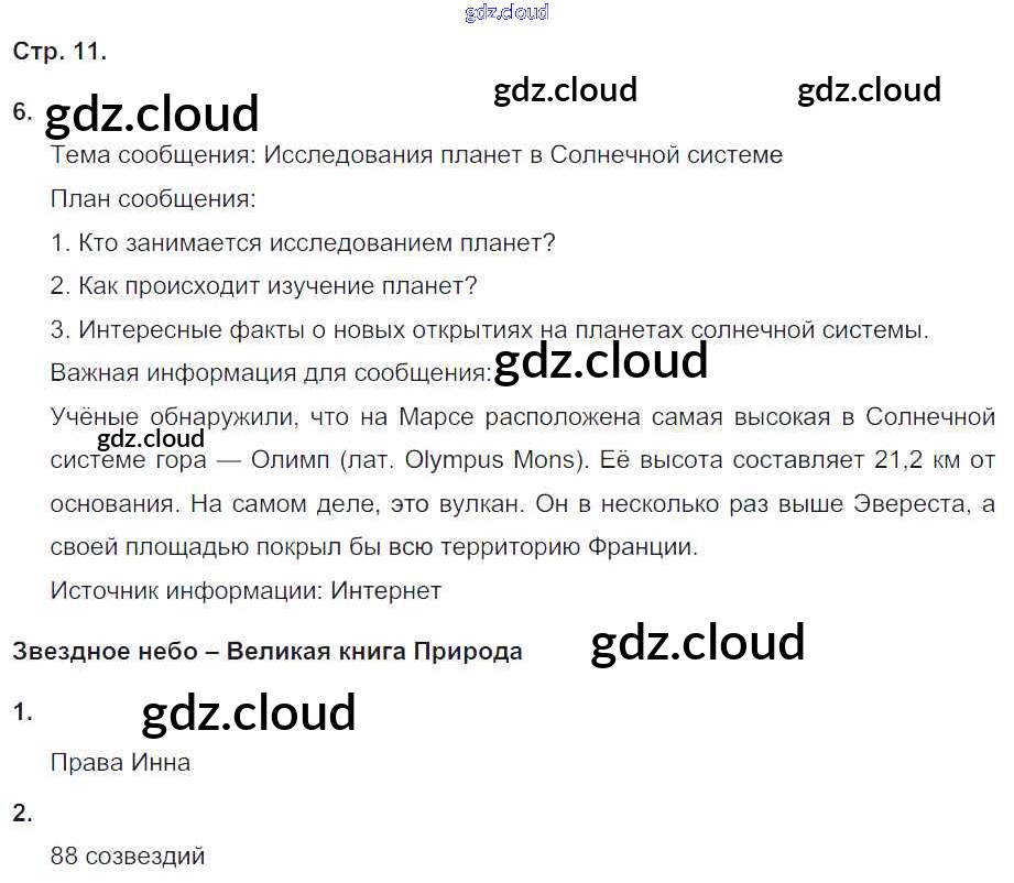 Ответ на задание 11 Рабочая тетрадь Окружающий мир за 4 (четвертый) класс Плешаков, Крючкова Школа России 2014 Часть 1, 2