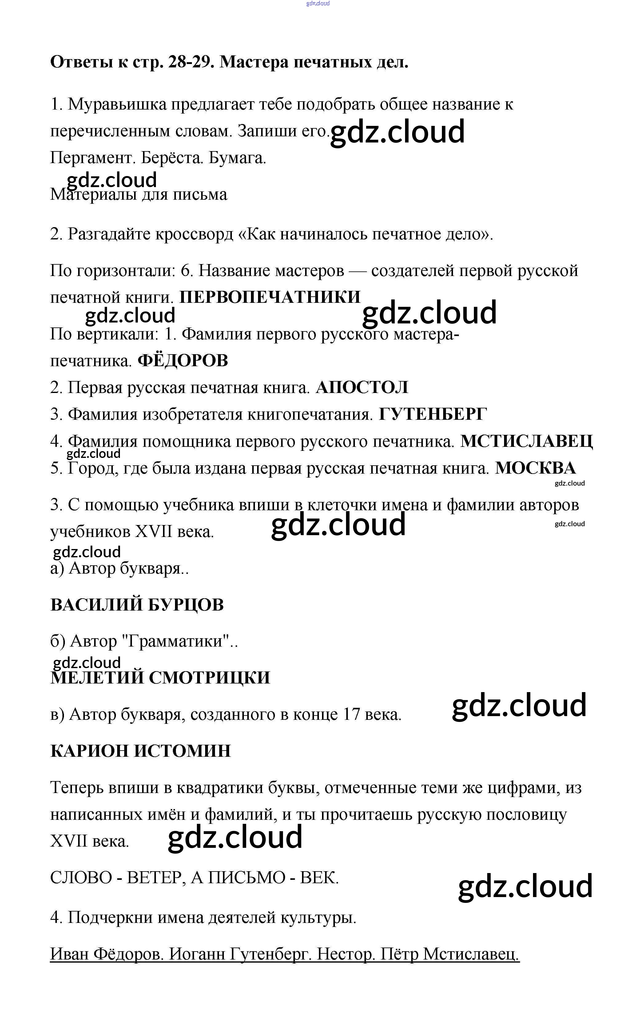 Ответ на задание 28 Рабочая тетрадь Окружающий мир за 4 (четвертый) класс Плешаков, Крючкова Школа России 2014 Часть 1, 2