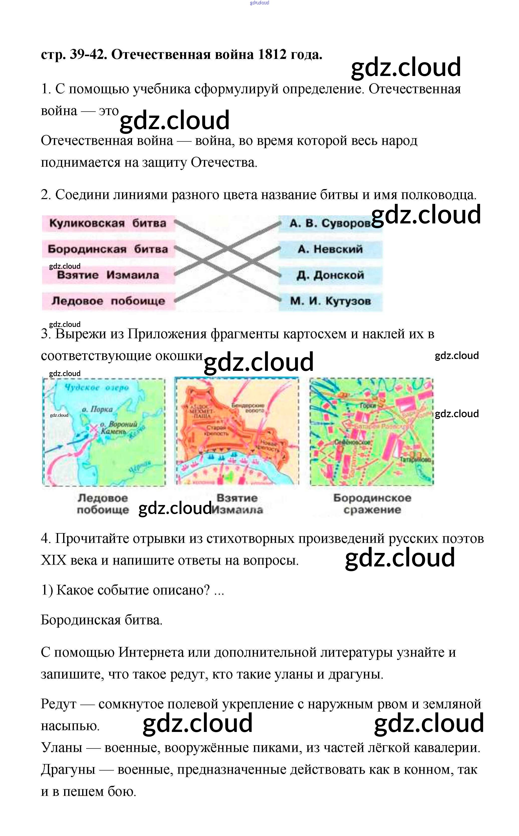 Ответ на задание 39 Рабочая тетрадь Окружающий мир за 4 (четвертый) класс Плешаков, Крючкова Школа России 2014 Часть 1, 2