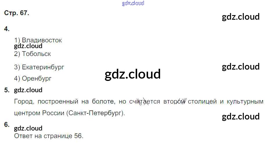 Ответ на задание 67 Рабочая тетрадь Окружающий мир за 4 (четвертый) класс Плешаков, Крючкова Школа России 2014 Часть 1, 2