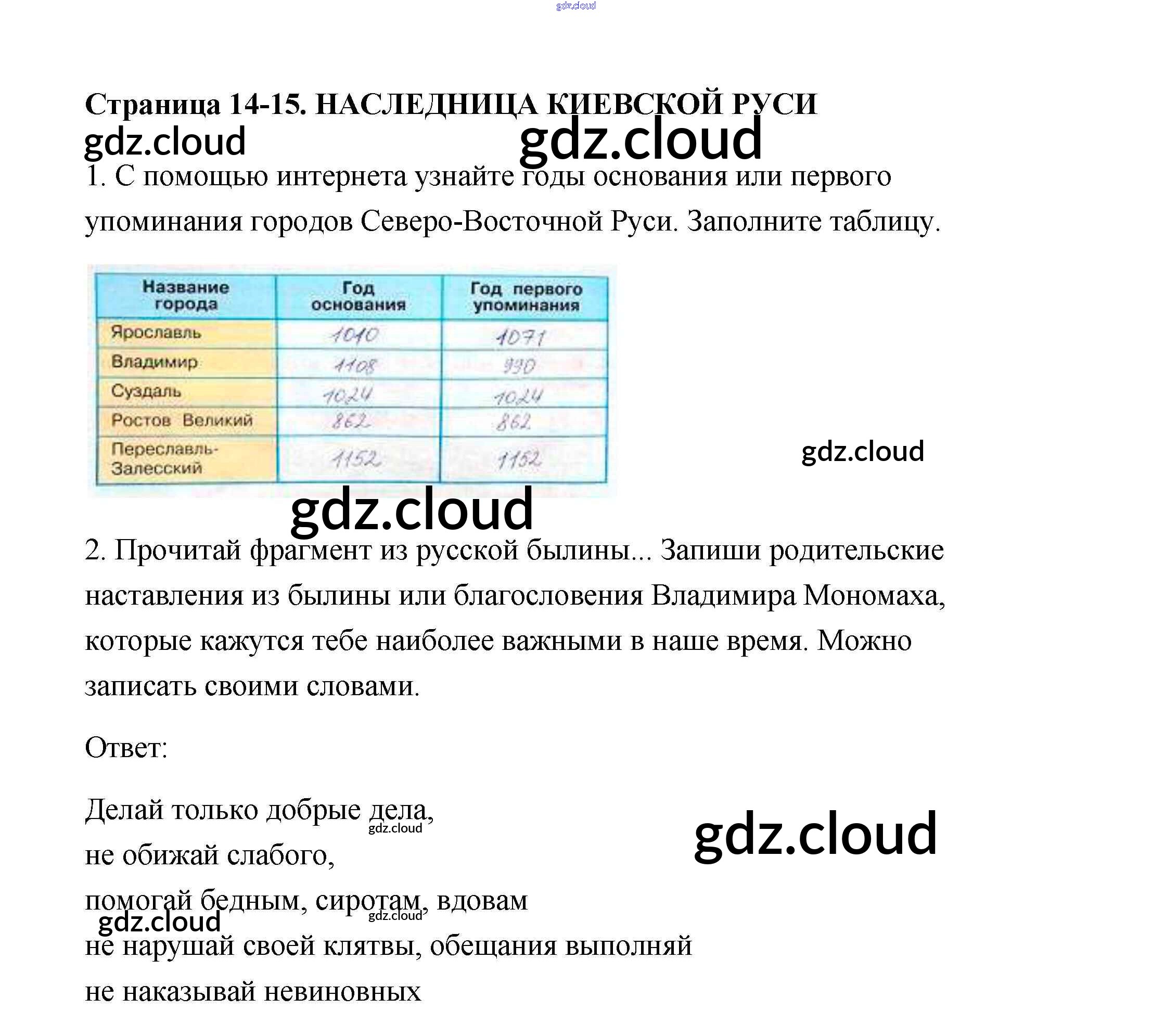 Ответ на задание 14 Рабочая тетрадь Окружающий мир за 4 (четвертый) класс Плешаков, Новицкая Перспектива 2015 Часть 1, 2