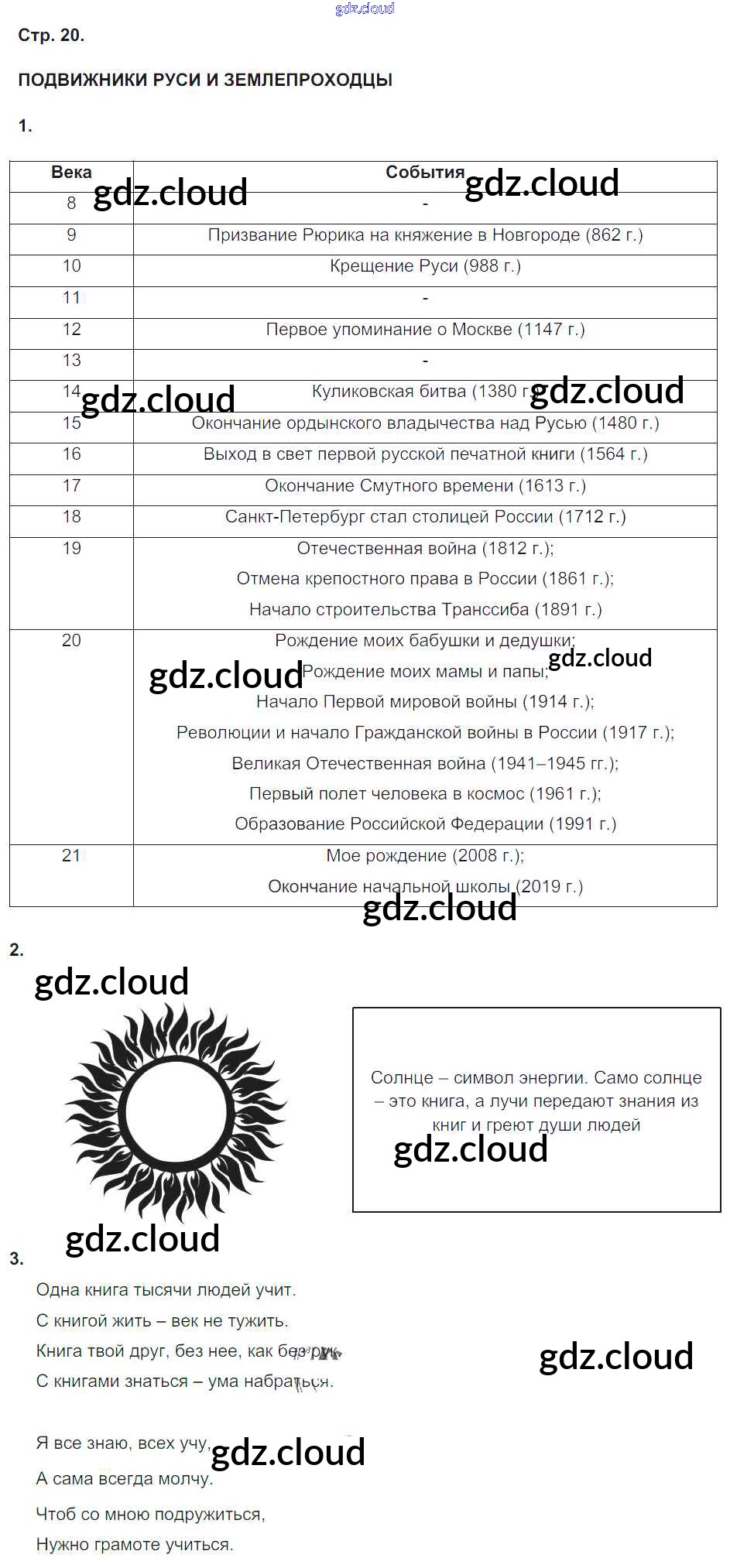 Ответ на задание 20 Рабочая тетрадь Окружающий мир за 4 (четвертый) класс Плешаков, Новицкая Перспектива 2015 Часть 1, 2