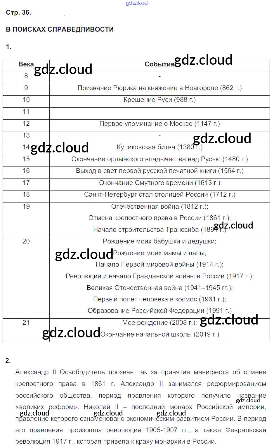 Ответ на задание 36 Рабочая тетрадь Окружающий мир за 4 (четвертый) класс Плешаков, Новицкая Перспектива 2015 Часть 1, 2