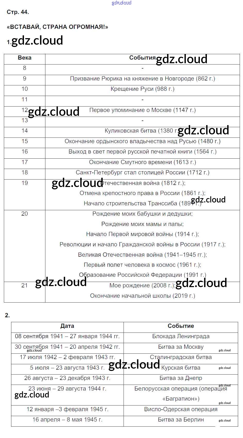Ответ на задание 44 Рабочая тетрадь Окружающий мир за 4 (четвертый) класс Плешаков, Новицкая Перспектива 2015 Часть 1, 2