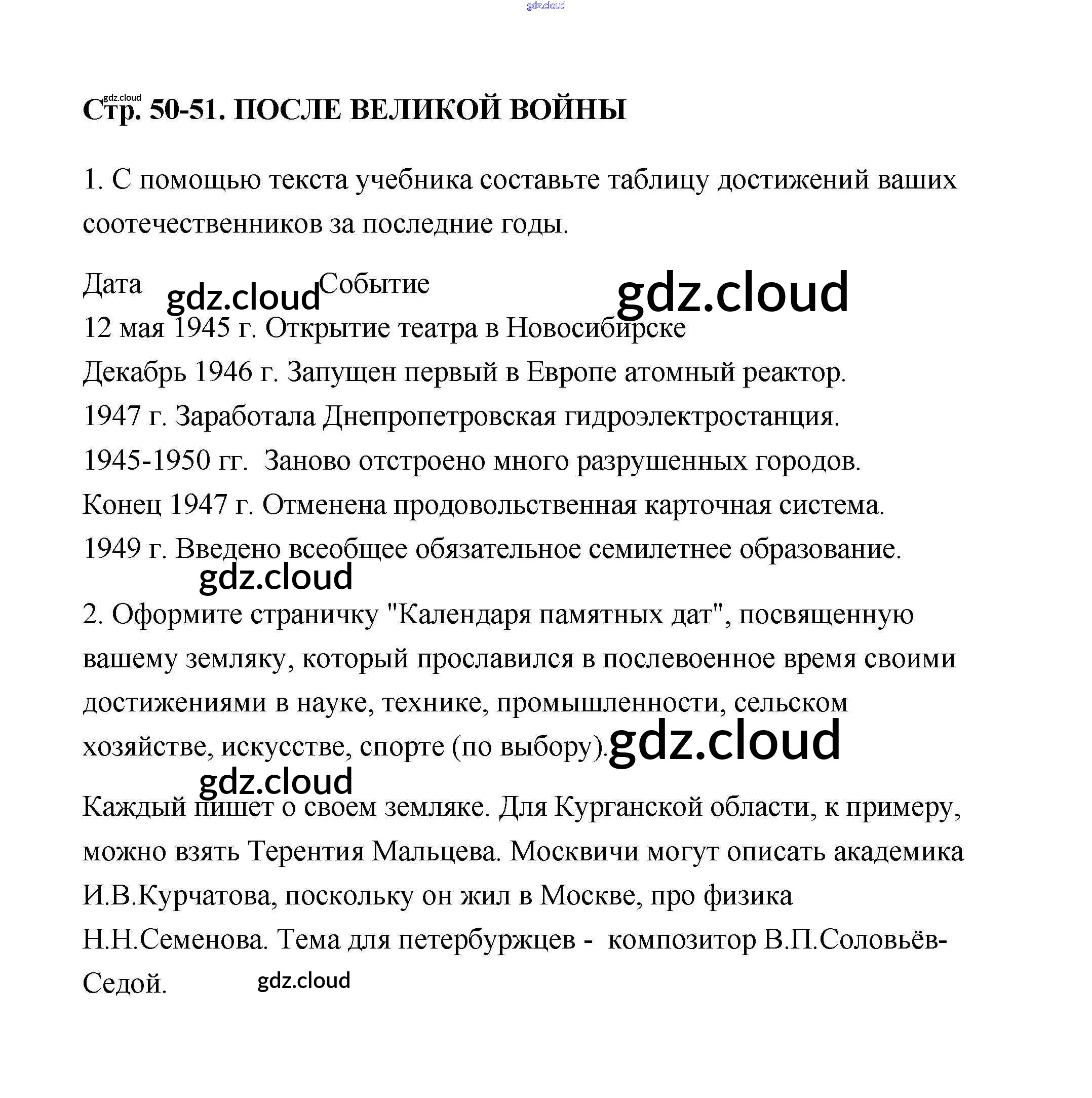 Ответ на задание 50 Рабочая тетрадь Окружающий мир за 4 (четвертый) класс Плешаков, Новицкая Перспектива 2015 Часть 1, 2