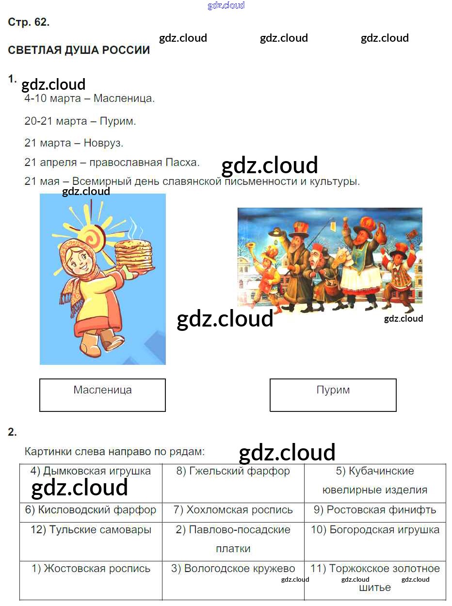 Ответ на задание 62 Рабочая тетрадь Окружающий мир за 4 (четвертый) класс Плешаков, Новицкая Перспектива 2015 Часть 1, 2