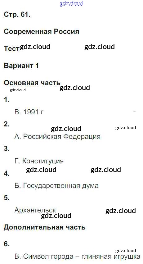 Ответ на задание 61 Тесты и самостоятельные работы для текущего контроля Окружающий мир за 4 (четвертый) класс Потапов, Калинина Планета знаний 2020