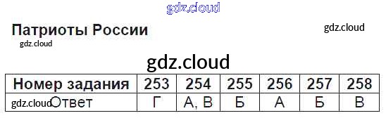 Ответ на задание №253-258 Тесты Окружающий мир за 4 (четвертый) класс Плешаков, Гара, Назарова Школа России 2014