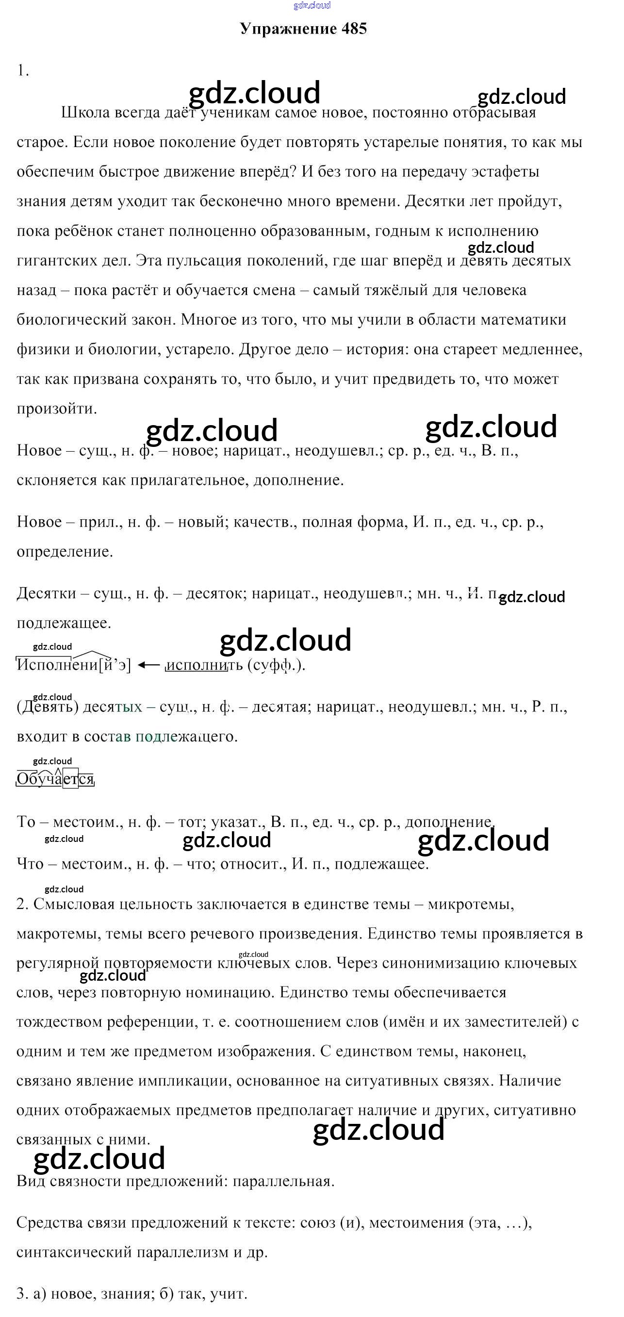 Ответ на задание 485 Учебник Русский язык за 10 (десятый) класс Леонович, Волынец, Долбик, Санкович 2015