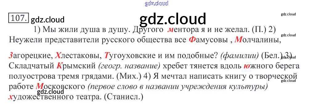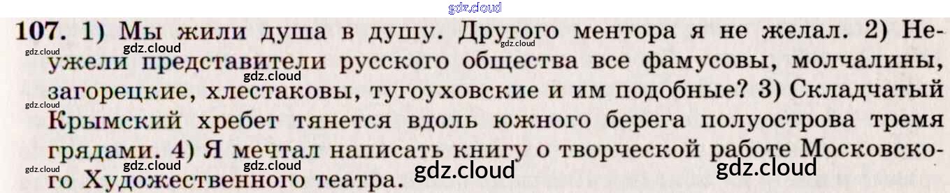 Ответ на задание 107 Учебник Русский язык за 10, 11 (десятый, одиннадцатый) класс Греков, Крючков, Чешко 2016