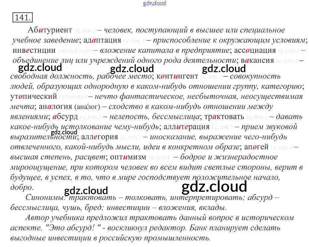 Ответ на задание 141 Учебник Русский язык за 10, 11 (десятый, одиннадцатый) класс Греков, Крючков, Чешко 2016