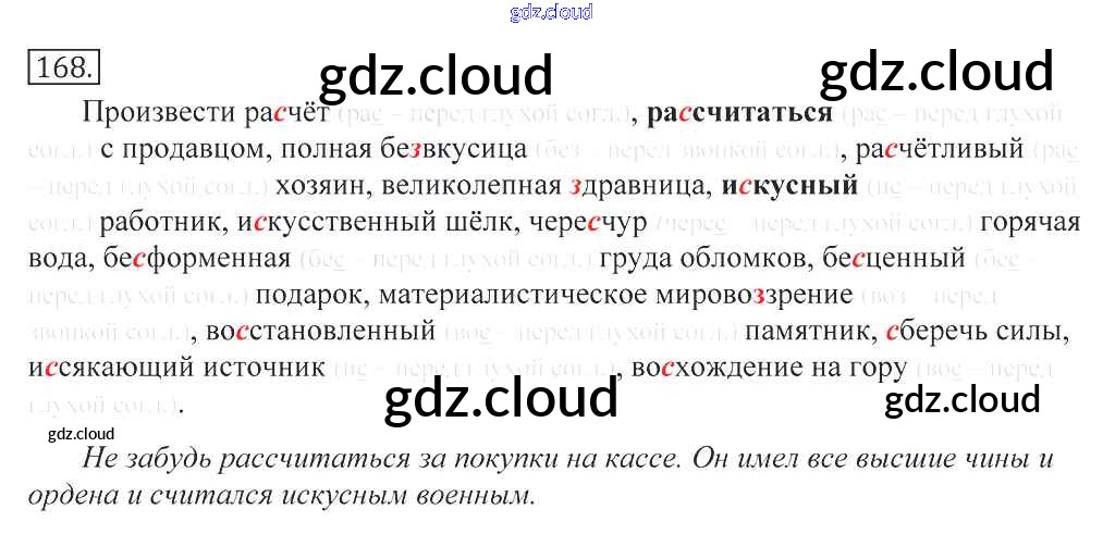 Ответ на задание 168 Учебник Русский язык за 10, 11 (десятый, одиннадцатый) класс Греков, Крючков, Чешко 2016