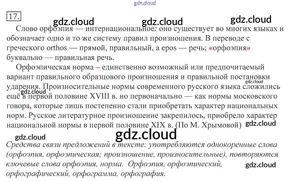 Ответ на задание 17 Учебник Русский язык за 10, 11 (десятый, одиннадцатый) класс Греков, Крючков, Чешко 2016